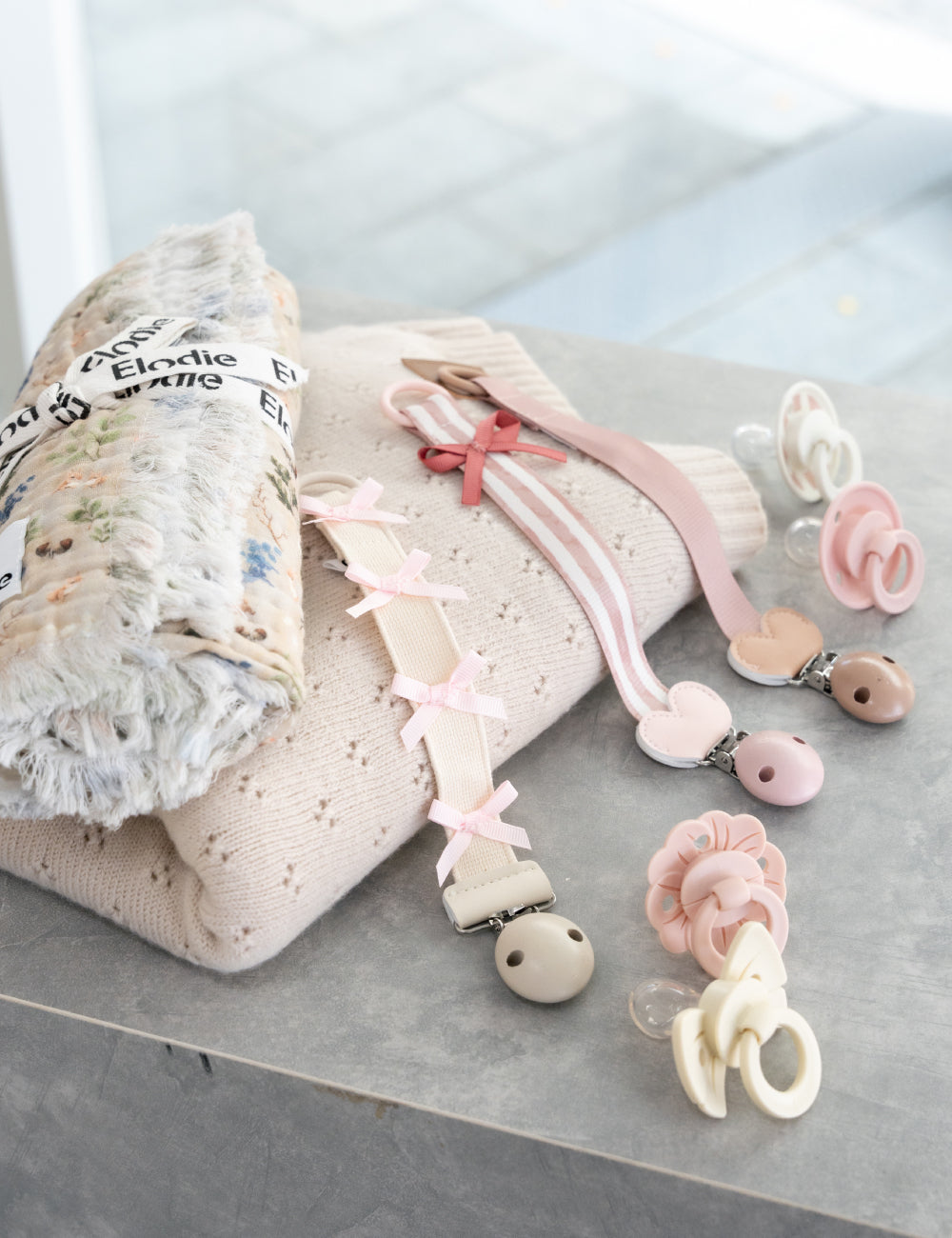 A. おしゃぶりホルダーです。Elodieのブランドはおしゃぶりホルダーから始まりました。
