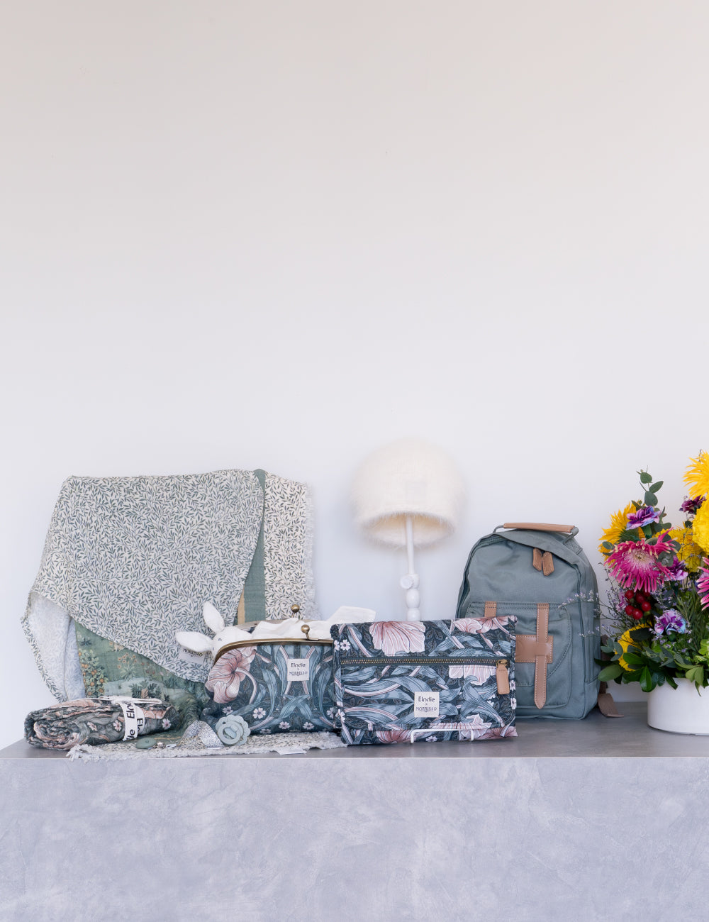 例えば、お食事エプロンと同じデザインパターンの食器セットを合わせて一緒にディスプレイする、フットマフと同じカラーのチェンジングバッグやブランケットを合わせてディスプレイするなどです。