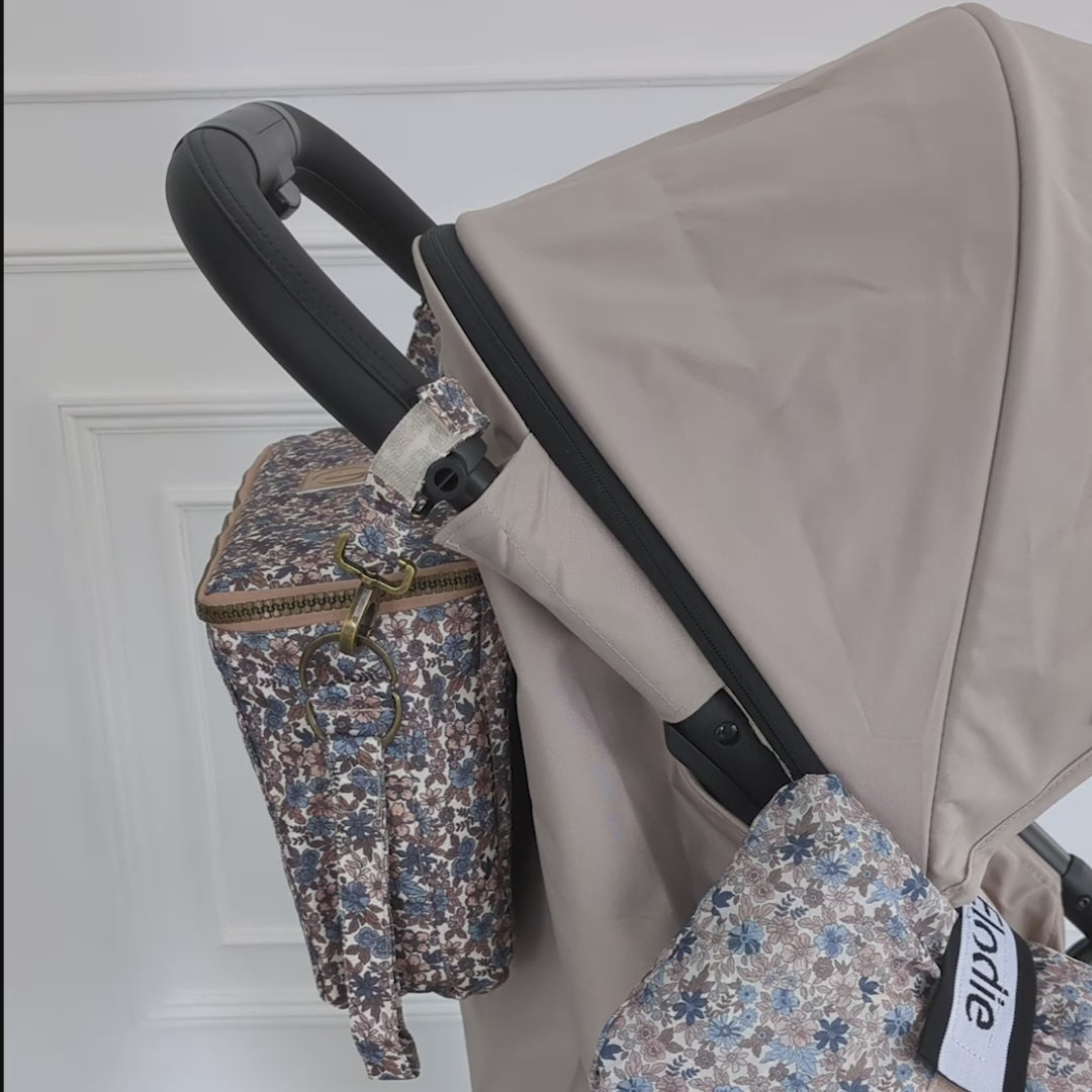 ・ベビーカーのハンドルに差し込むだけの簡単取り付け。エロディの全てのベビーカーモデルに対応しています。