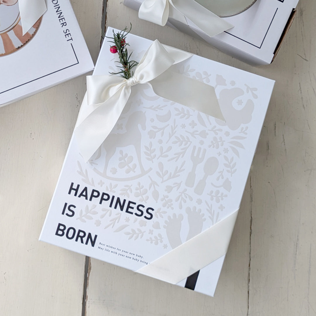 人気の食事エプロンと、ママが喜ぶブランケットを組み合わせた、出産祝いにぴったりのギフトセット。クリスマス限定の特別ラッピングでお届けします。