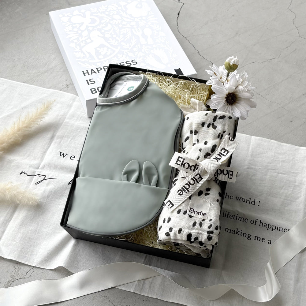 生まれたばかりのベビーちゃんの必需品や長く使えるアイテムをオリジナルのギフトセットにしました。