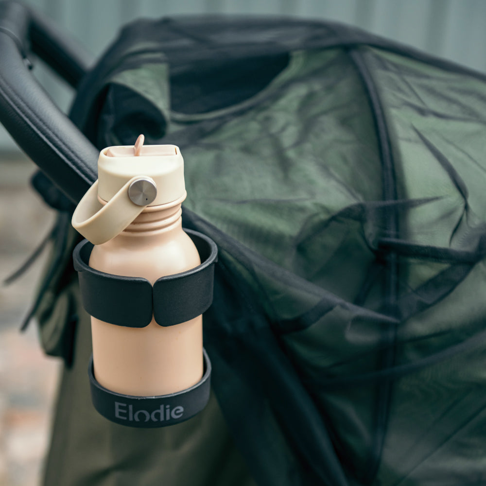 ・エロディのベビーカーのハンドルに簡単に取り付けられて、哺乳瓶やペットボトル、タンブラーなど様々なサイズに対応可能です。