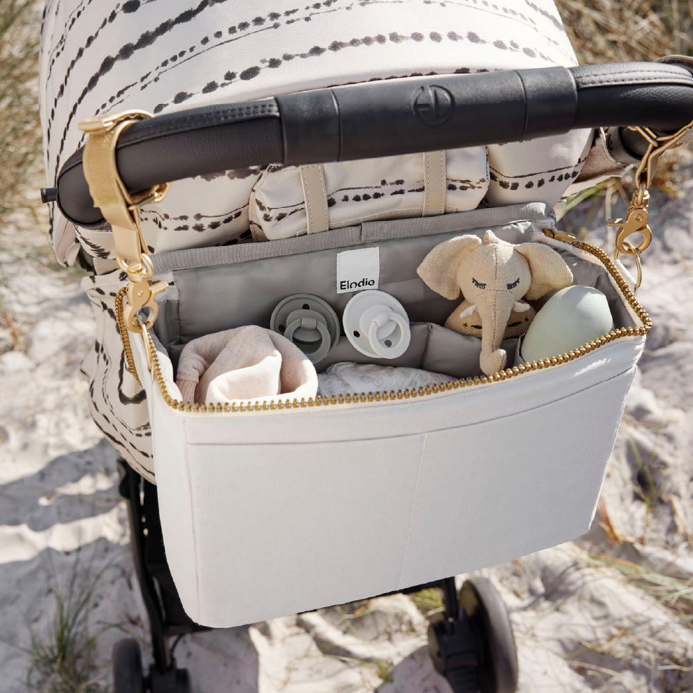 丈夫な形で型崩れも心配なしのお家でも外出先でも使いやすいベビーカーバッグ。整理整頓は、見た目も大切。Elodieのオーガナイザーは、まさにそれを実現します。ベビーカーのハンドルにサッと取り付けるだけで、赤ちゃんとママパパのお出かけの必需品を収納できます。