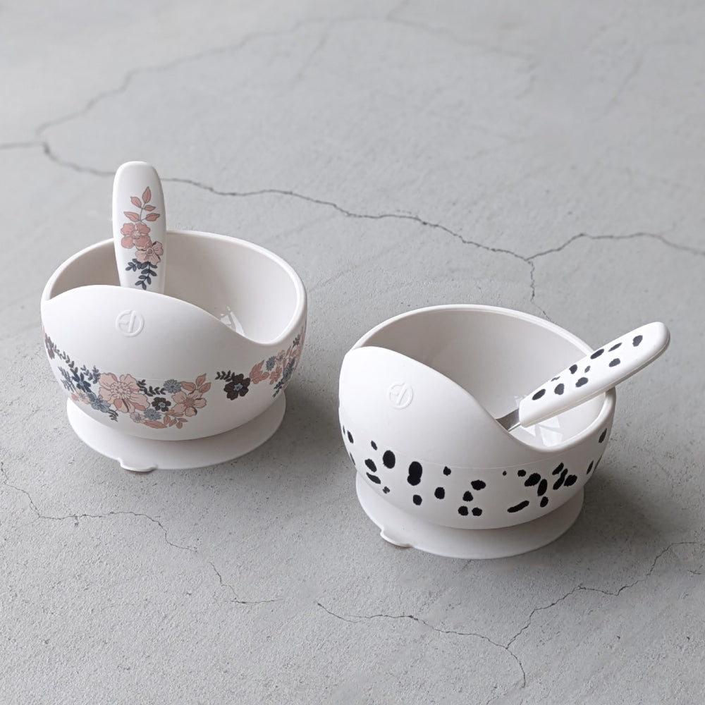 丸い縁のある半ドーム型になったボウルは、食べ物がすくいやすく、お子様が自分で食事をしやすいデザイン、底にはハイチェアやテーブルにピタッと吸着してひっくり返したり、落ちるのを防いでくれます。吸盤付き。